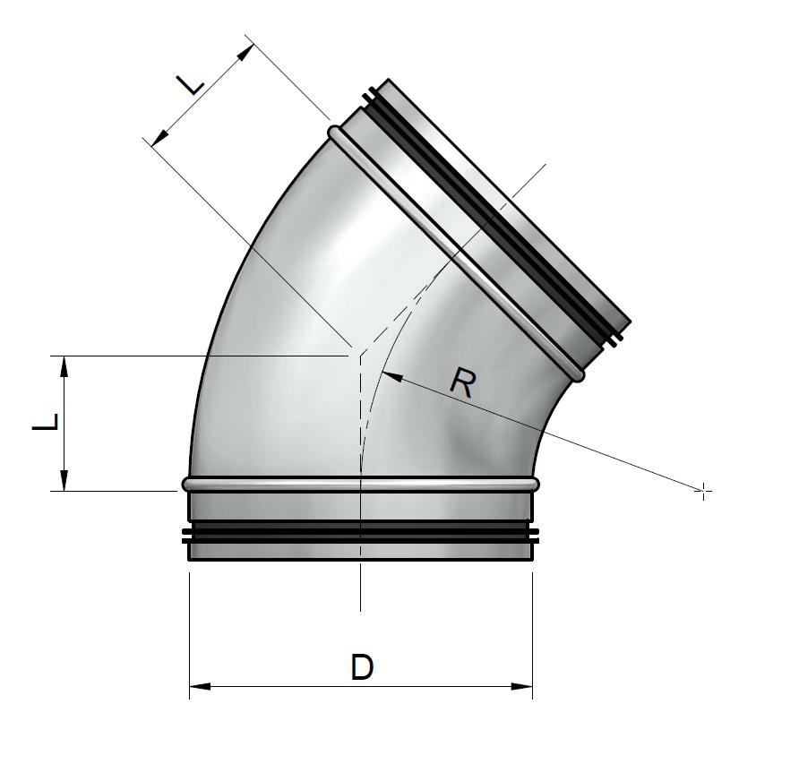 wraz z rurami SPIRO i rurami gładkimi kolano tłoczone tworzy rurociąg instalacji wentylacyjnej